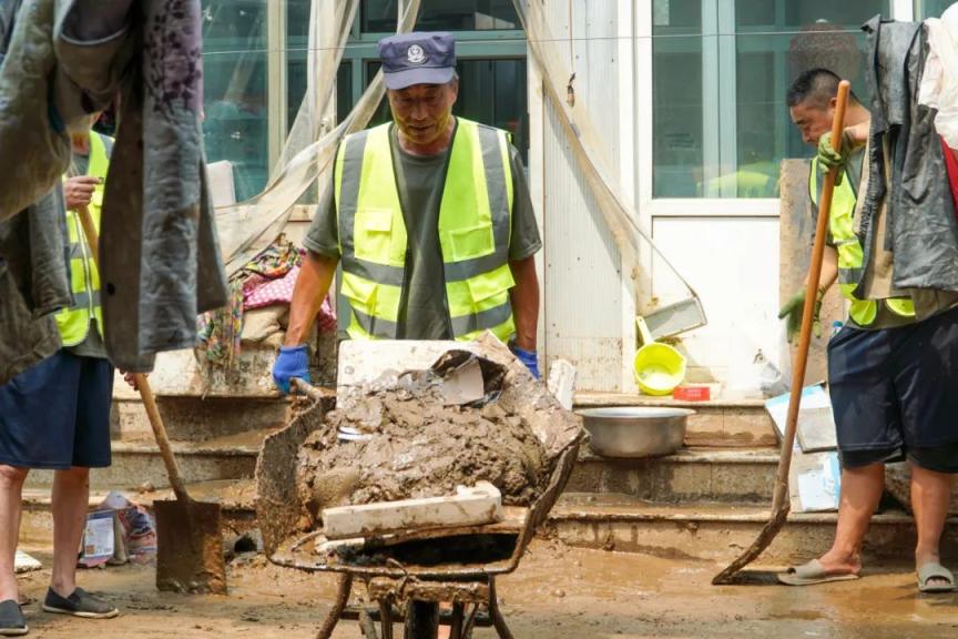 强降雨过后,灾区一片狼藉,厚厚的淤泥在街巷间堆积。区内民兵迅速集结,赶赴受灾一线关上村。民兵队伍中,不少退役老兵带着军人的铁血本色,将“特别能吃苦、特别能战斗”的优良作风化作实际行动。他们手持铁锹、水桶等工具,到积满淤泥的村民家中,全力清理屋里屋外厚厚的淤泥和垃圾,用行动诠释着“退伍不褪色”的责任担当。