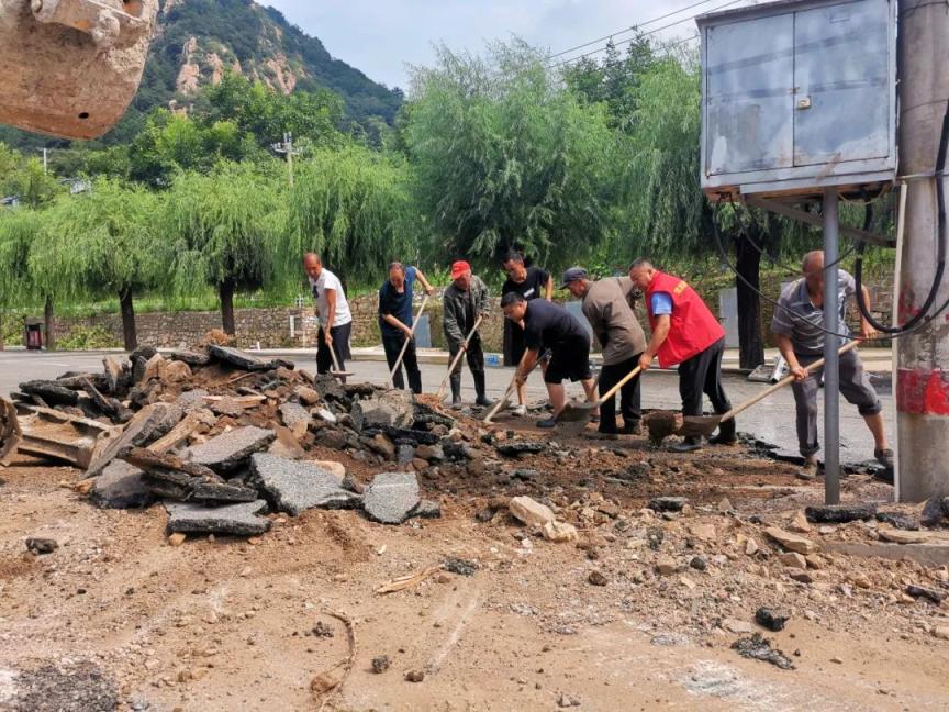 南独乐河镇部分村庄出现墙体坍塌、道路淤泥堆积等情况,各村党员志愿者、保洁员与村民组成“清淤小分队”,大家手持铁锹、扫帚清理主次干道的淤泥积水;对村内垃圾桶、公厕等区域加大消杀频次,防范雨后病菌滋生;对危险墙体,采用重新砌砖、浇筑水泥等方式恢复稳固,全力恢复镇域正常秩序。