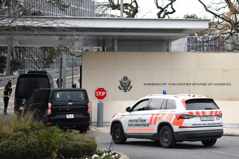 11月23日,在瑞士日内瓦,外交车辆进入美国常驻联合国日内瓦办事处代表团驻地。新华社记者 连漪 摄